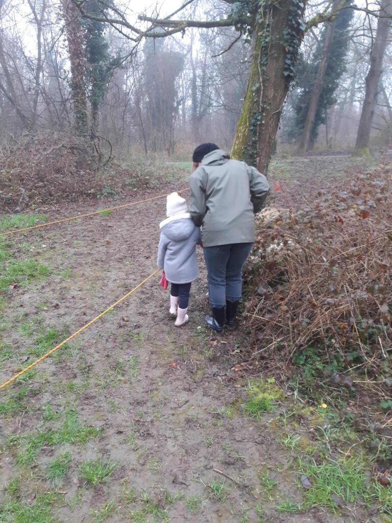 Rachel bénéficie de trois demi-journées en présence de Daphné avec ses élèves, et s’est engagée à mener ensuite des séances en autonomie. Ce jour-là, la classe est accompagnée de l’ATSEM, d’une AESH et d’une maman d’élève. C’est déjà la troisième sortie à l’école du dehors.