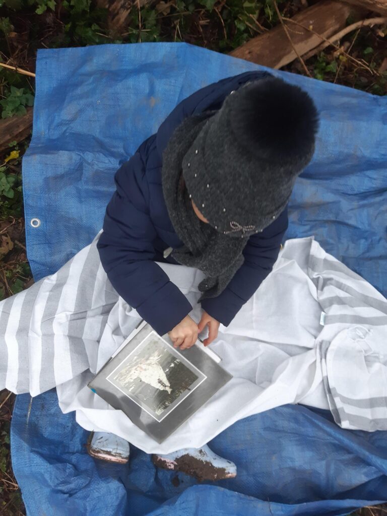 Après ce temps intense, on partage une tisane pour se réchauffer, puis une dernière histoire sur l’hiver avant de décider de rentrer. Certains petits bâillent. À l’école du dehors, on vit des moments riches, profonds, engageants. On revient avec les pieds pleins de boue, parfois un peu tachés, mais ce n’est pas grave.