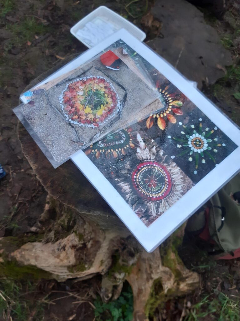Avec les MS, l’ATSEM propose la création d’un mandala à partir d’éléments naturels et de leurs couleurs.